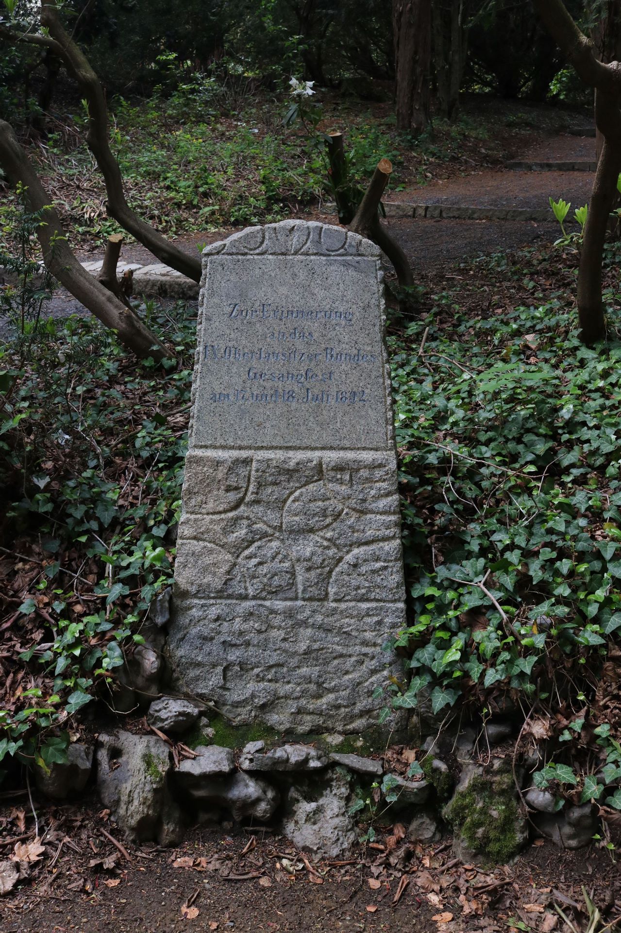 Gedenkstein zum IX. Oberlausitzer Bundesgesangsfest 1892Inschrift: Zur Erinnerung an des IX Oberlausitzer BundesGesangfest am 17. und 18. Juli 1892