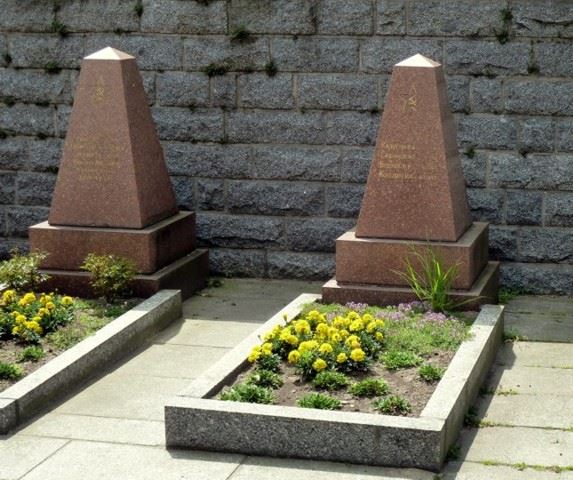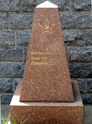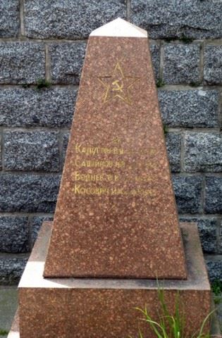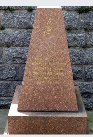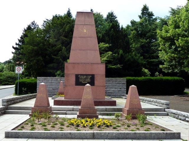Obelisk aus rotem Porphyr gestalterischer Mittelpunkt, Begräbnisort von 18 Sowjetsoldaten, geschichtlich von Bedeutung. In Einzel- und Gemeinschaftsgräbern ruhen hier Soldaten und Offiziere, in den Kämpfen in der Umgebung im April 1945 gefallen, bzw. im Mai 1945 in Lazaretten verstorben. Unter ihnen ein „Held der Sowjetunion“. Die Gräber tragen einheitlich gestaltete Grabobeliske mit Namenstafeln. Im Zentrum Denkmal: Auf einem Podest Sockel, an der Vorderseite Tafel mit ehrender Inschrift, darüber Pyramidenaufsatz, an der Vorderseite Sowjetstern. Material: Beton, verputzt, Höhe etwa 650 cm.